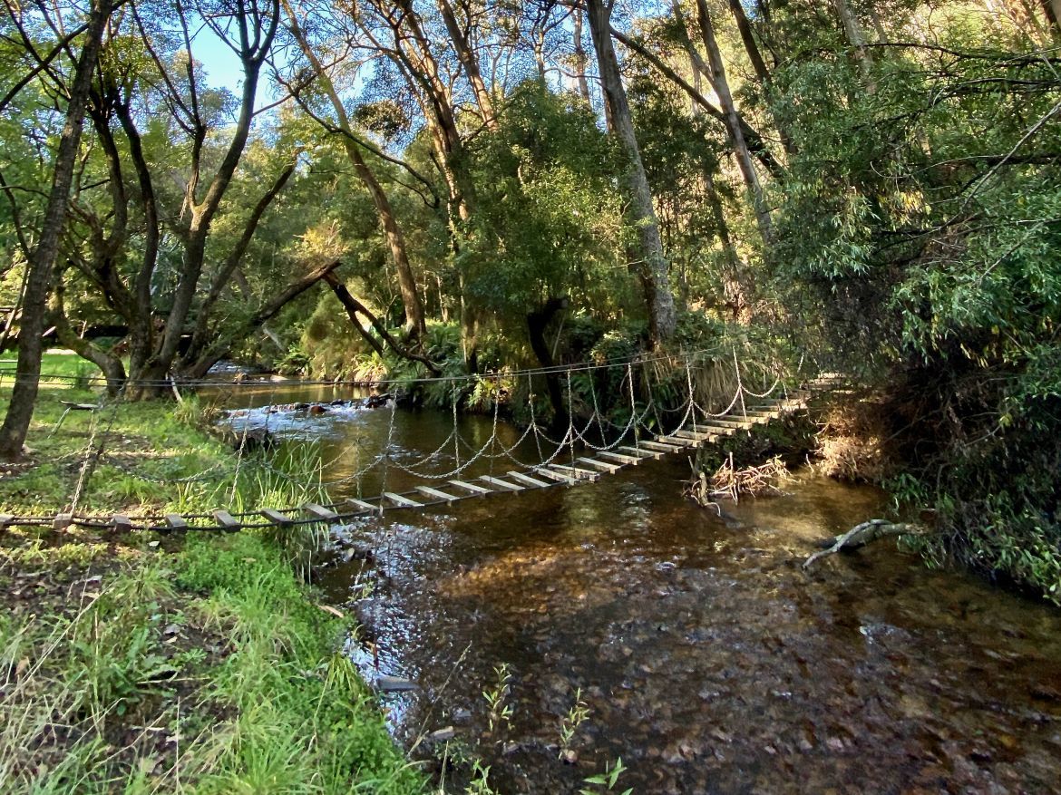 There are many quiet places to take a refreshing dip in summer along the east and west branches of the Ovens River. The two river branches run either side of the centre of Harrietville, merging just north of Tavare Park.