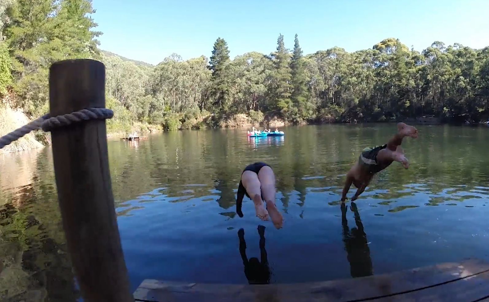 The Tronoh Dredge Hole in Harrietville is a small lake surrounded by tranquil bushland. Its refreshingly cool waters make it a popular place to swim for people of all ages: it's large enough for lap swimming, it has a shallow netted section for small children, and teens will love the jetty and floating pontoon.